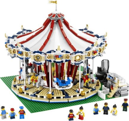 Sí, otro de los juegos de LEGO más caros que hay también está basado en maquinaria. Esta vez es un carrusel, muy parecido a lo que verías en un carnaval o un parque de diversiones. Sin embargo, no es un carrusel cualquiera: ¡en realidad está motorizado! ¡Eso significa que gira como un carrusel real! No solo eso, sino que, al igual que los carruseles de la vida real, las piezas se mueven hacia arriba y hacia abajo.