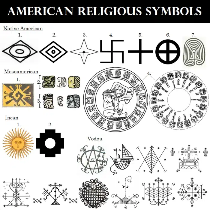 Muchos símbolos estadounidenses no son del todo religiosos o en realidad son pictogramas. Por lo tanto, esta lista puede parecer limitada.